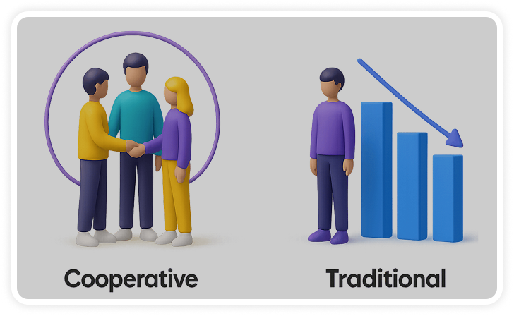The world is changing fast — and so is the way we earn a living. AI, automation, and shifting economies are eliminating traditional jobs faster than they’re created. That’s why we built Cooperative Universal Income (CUI — pronounced “Q”) — the world’s first* legally recognized cooperative income system for the realities of the 21st century.